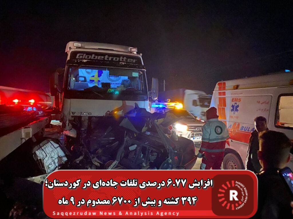 افزایش ۶.۷۷ درصدی تلفات جادهای در کوردستان؛ ۳۹۴ کشته و بیش از ۶۷۰۰ مصدوم در ۹ ماه
