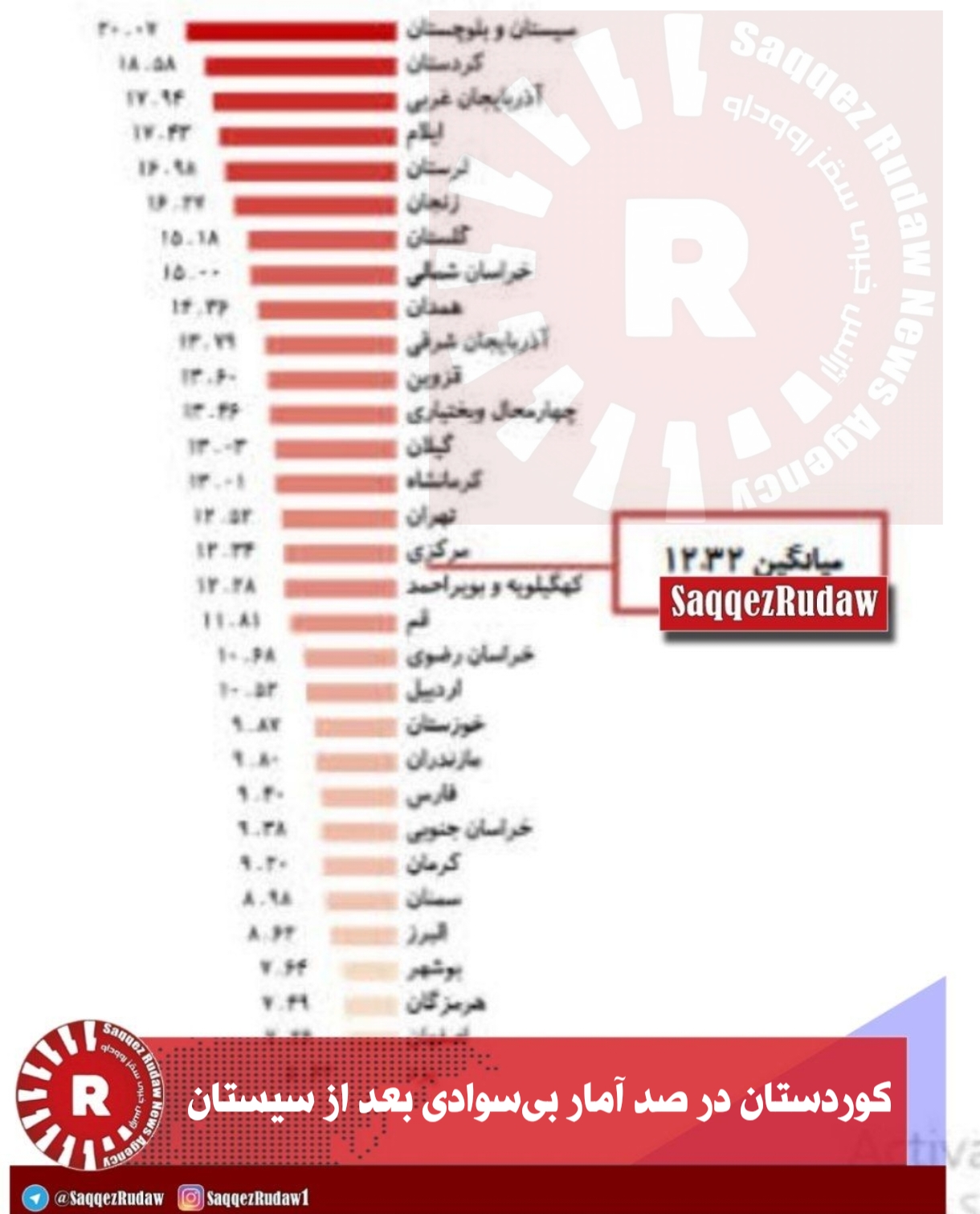 کوردستان در صد آمار بیسوادی بعد از سیستان