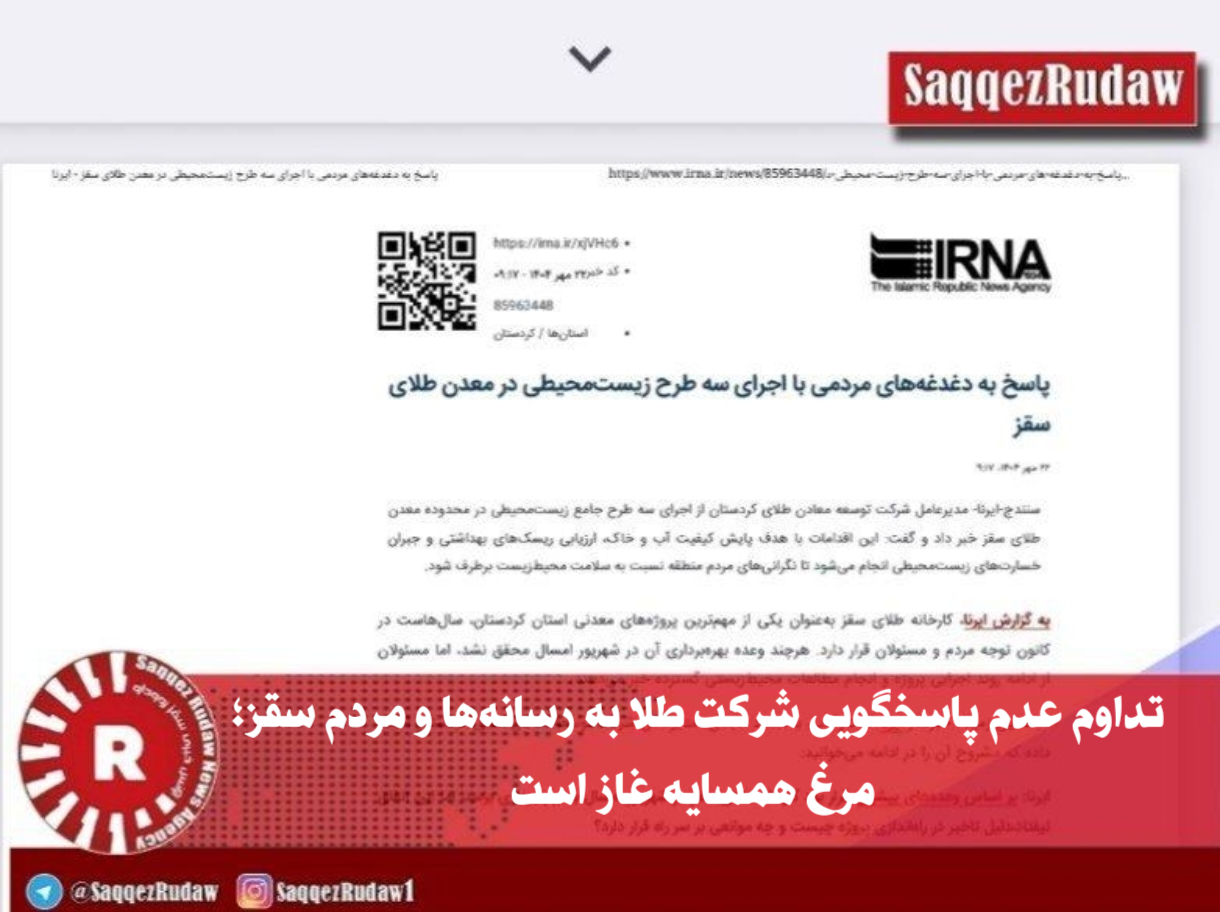 تداوم عدم پاسخگویی شرکت طلا به رسانهها و مردم سقز؛ مرغ همسایه غاز است