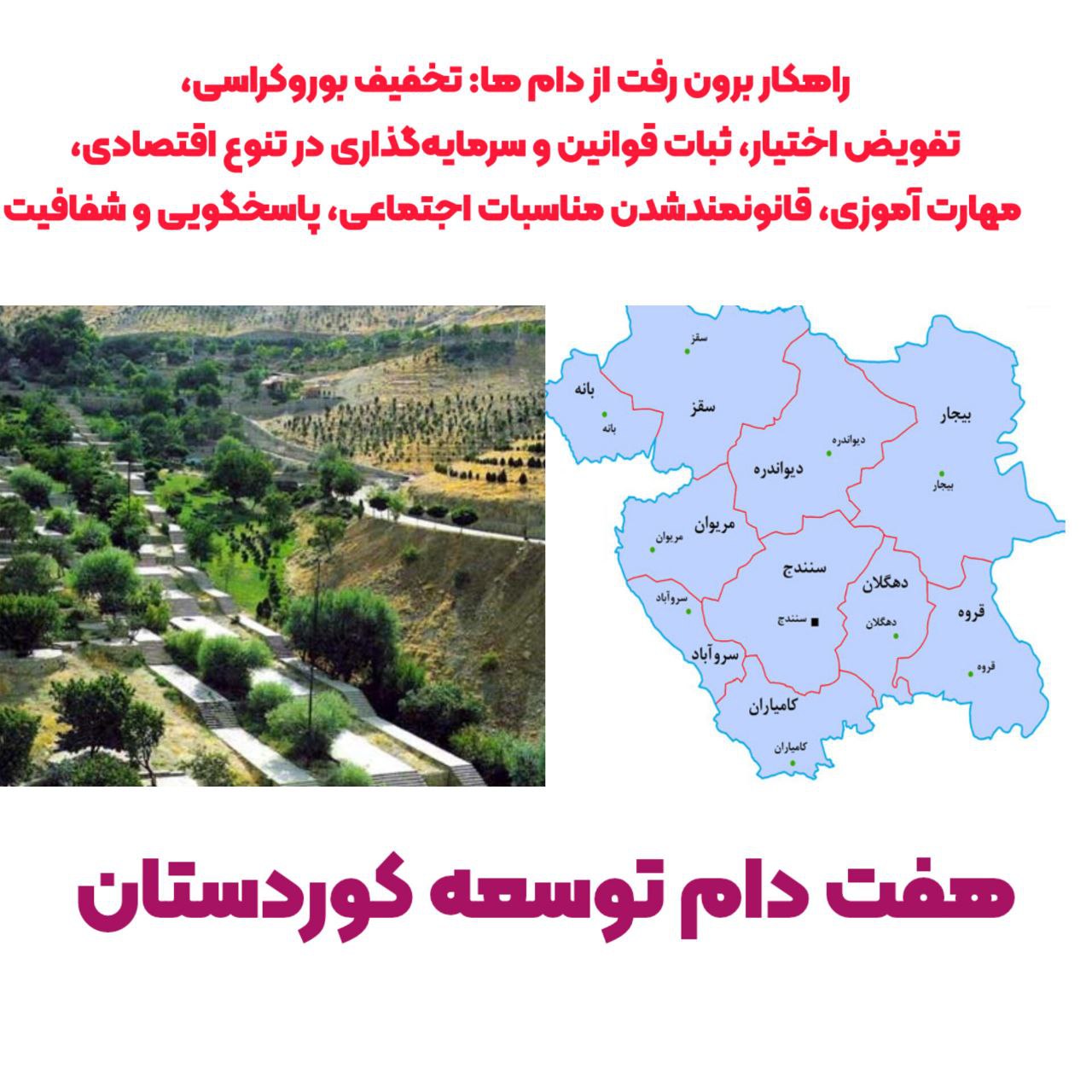 کوردستان، نیازمند هفت گانه؛ تخفیف بوروکراسی،تفویض اختیار، مدیریت تغییر نه صرف تغییر مدیران، ثبات قوانین و سرمایهگذاری در تنوع اقتصادی، آموزش و توسعه منابع انسانی، مهارت آموزی، قانونمندشدن مناسبات اجتماعی، پاسخگویی و شفافیت است.